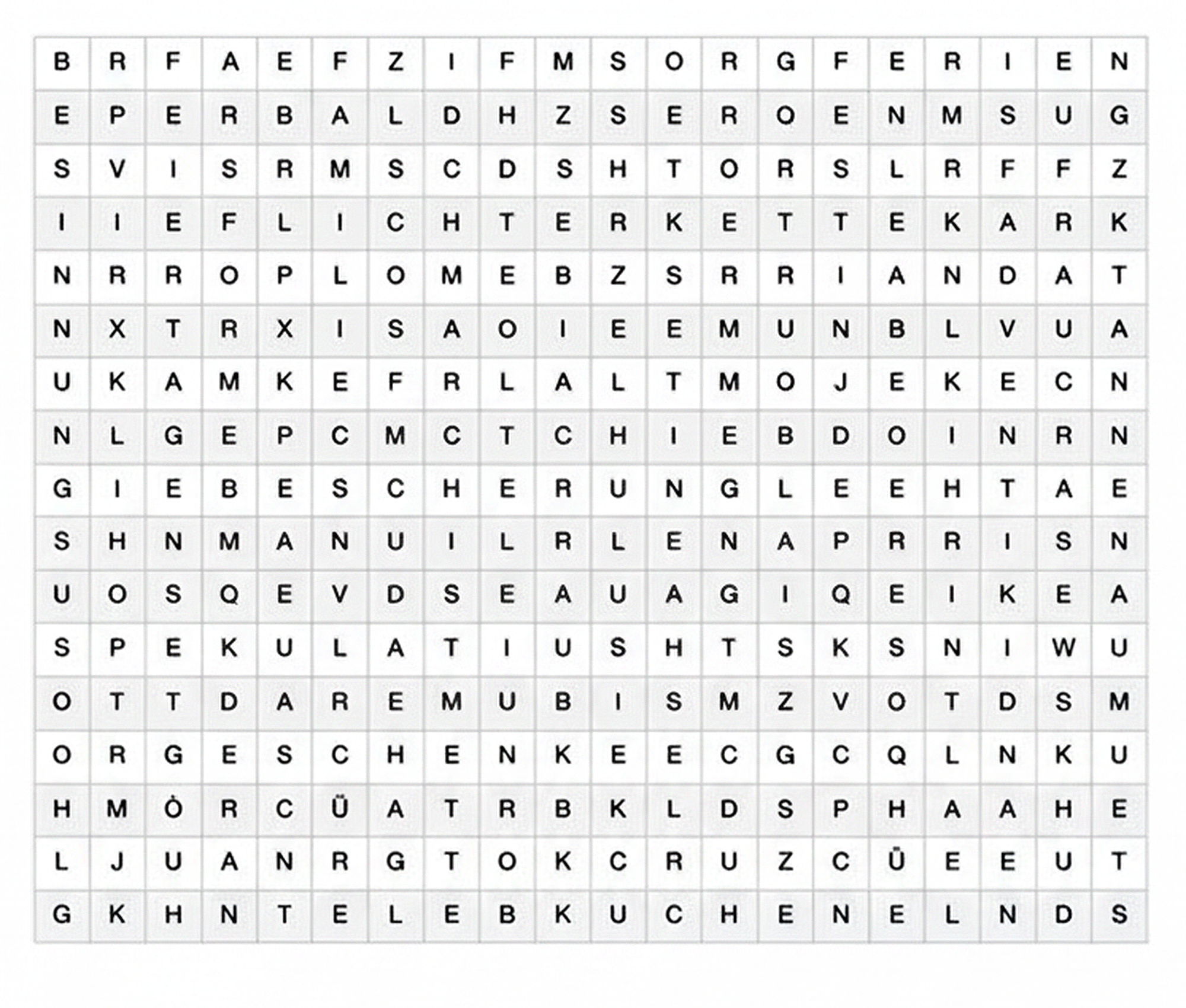 In dem heutigen Rätsel sind insgesamt 18 Wörter versteckt – waagerecht, senkrecht und diagonal. Findest du sie?