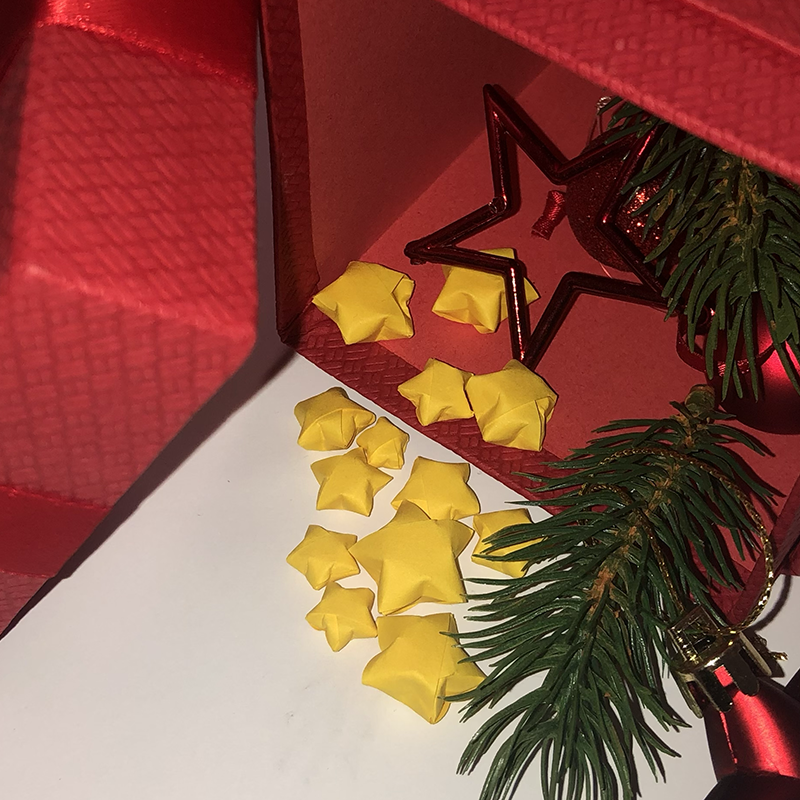 Du kannst auf den Streifen auch einen kleinen Gruß schreiben. Um diesen zu lesen muss man den Stern jedoch auseinander falten.