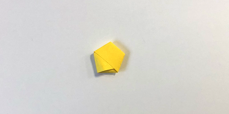 2. Falte den langen Streifen jetzt immer rund um das Fünfeck. Der Streifen folgt automatisch der Form.