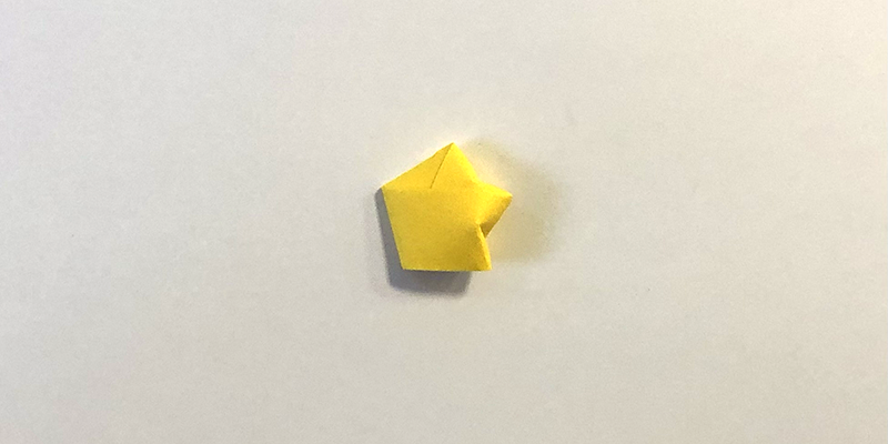 3. Wenn nur noch ein kurzes Ende übrig ist, steckst du es in eine Lasche des Fünfecks.